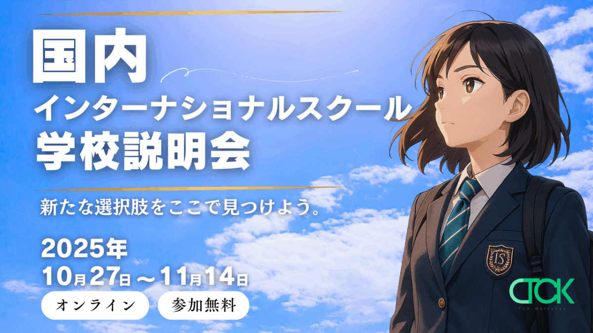 インターナショナルスクールへの進学をご検討中の皆様へ、お子様一人ひとりの未来につながる学校選びの第一歩として、本オンライン説明会を開催します。TCK Workshopが独自の視点で選び抜いた魅力的な学校を迎え、各校の教育理念や特色を詳しくご紹介します。この出会いが、お子様の新たな学びの扉を開くきっかけとなることを願っています。