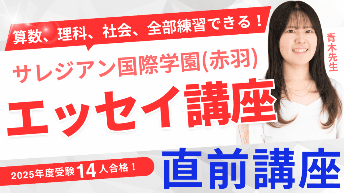 本講座では、サレジアン国際学園(赤羽)の出題傾向をふまえた英語Essay模試に取り組み、その後すぐにプロ講師による解説授業で理解を深めていきます。