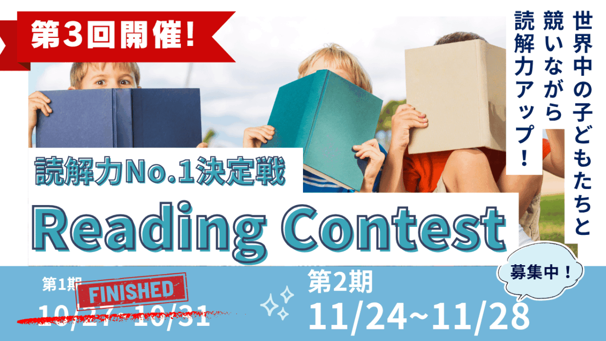 Readingはいつでもどこでも、そして一人でも始められる素晴らしい学習方法です!このコンテストをきっかけに「集中して」「毎日真面目に」「ちょっとムズかしい」「色々テーマの」Readingをしてみませんか??
