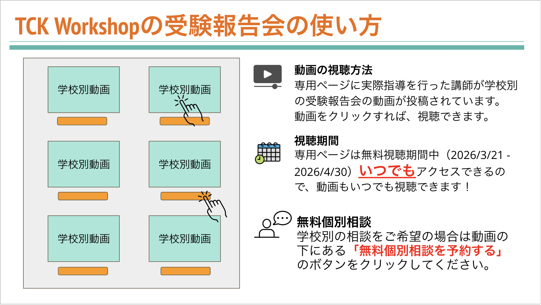 TCK Workshop 2026年度 受験報告会 視聴可能コンテンツ