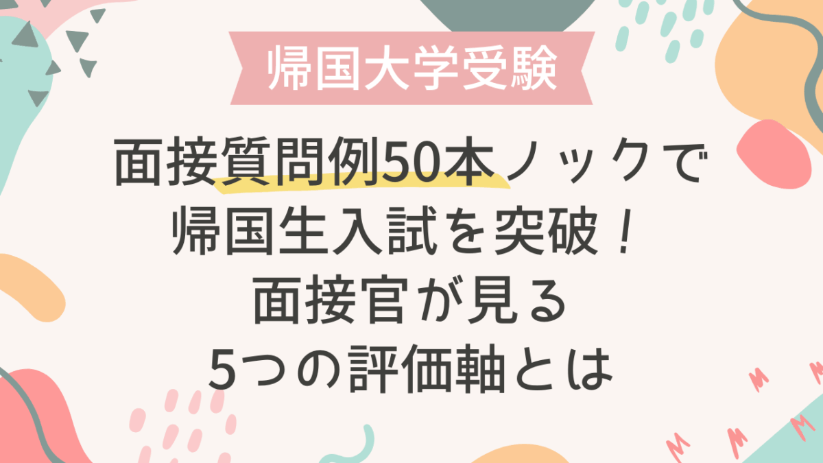 本記事では、帰国生入試の大学面接で頻出する質問を50選に厳選し、「なぜその質問が聞かれるのか」という大学側の意図を分析しながら、合否を分ける「深み」のある回答を作成するための具体的な対策ポイントを徹底解説します。この質問集を活用し、万全の準備で面接に臨み、合格を勝ち取ることをおすすめします。