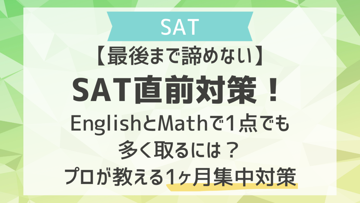 SAT本番までのラスト1ヶ月、スコアを伸ばすためのポイントをまとめました。