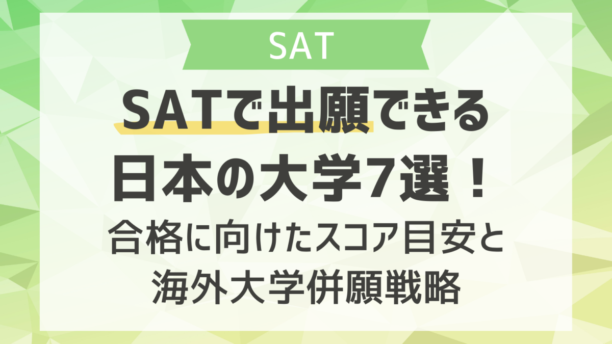 SATを利用して日本の大学へ進学し、海外併願も視野に入れた準備を進めるためのポイントは以下の通りです。