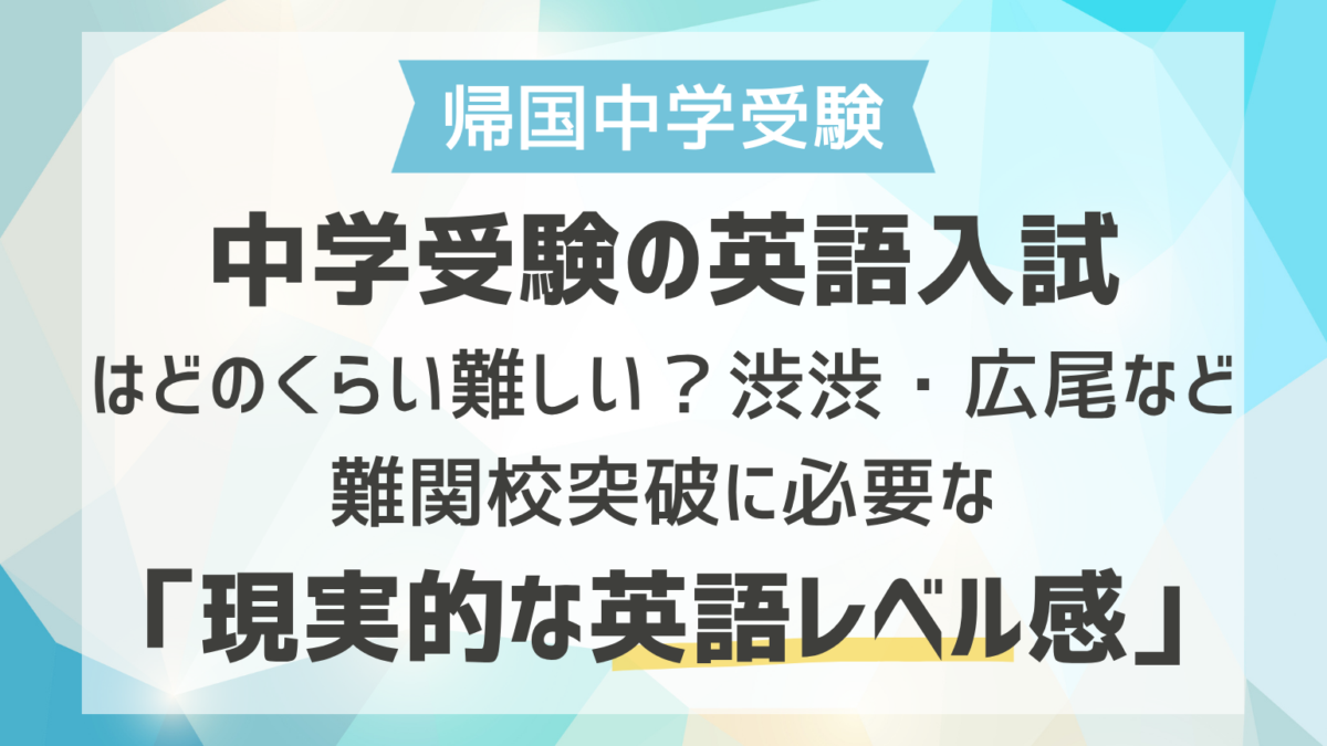 | 最難関 | 渋渋、渋幕、広尾(AG)、慶應SFC、三田国際(IC) | 英検1級以上(ネイティブ中1〜2レベル) | 長文読解・エッセイライティング・英語面接が中心。文学的・社会的な深い考察が必要。 |