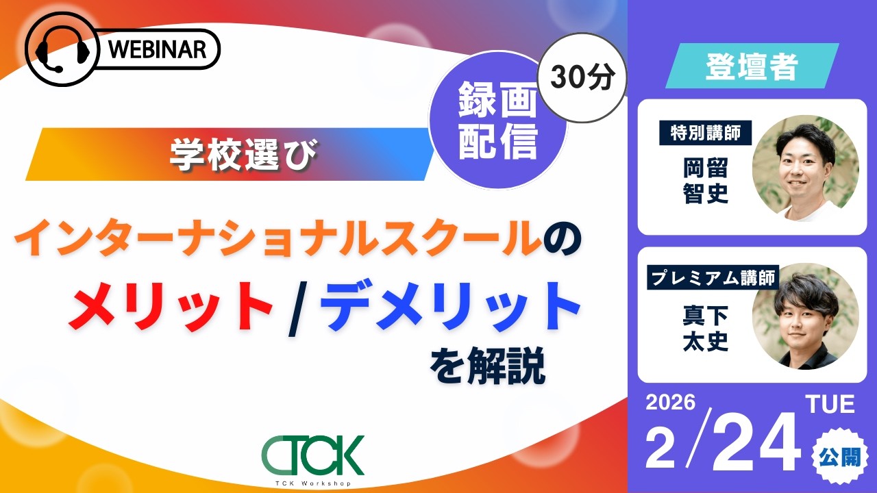 この記事は、こちらのウェビナーを基に作成しています。TCK Workshop主催のウェビナーでは、指導経験豊富な講師が実際の指導を通して蓄積した帰国生の受験、英語学習などについての情報を、それぞれの時期に合わせて毎週お伝えしておりますので、ぜひご覧ください。