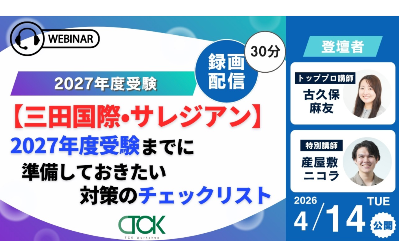 この記事は、こちらのウェビナーを基に作成しています。TCK Workshop主催のウェビナーでは、指導経験豊富な講師が実際の指導を通して蓄積した帰国生の受験、英語学習などについての情報を、それぞれの時期に合わせて毎週お伝えしておりますので、ぜひご覧ください。