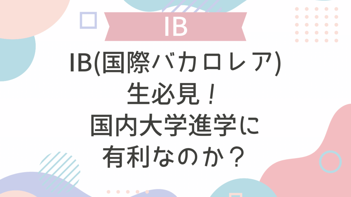 日本・海外を問わず、現在IB(国際バカロレア)の授業を受けている方の中で、「大学は日本に戻りたい」「日本の大学に通いたい」と考えている方も多いのではないかと思います。